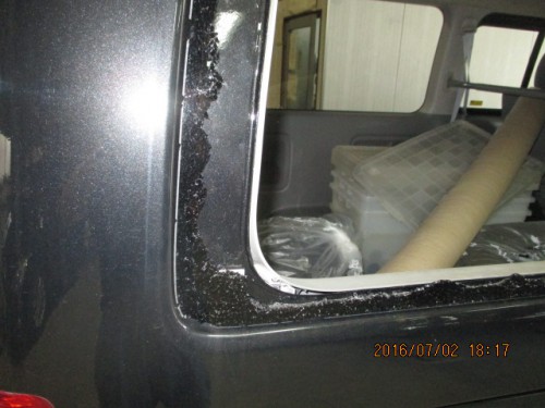 1 荷物を降ろし、割れたガラスを掃除していきます。