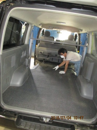 今回はレジアスエース 右クオーターガラス割れ保険にて板金塗装修理について掲載します。