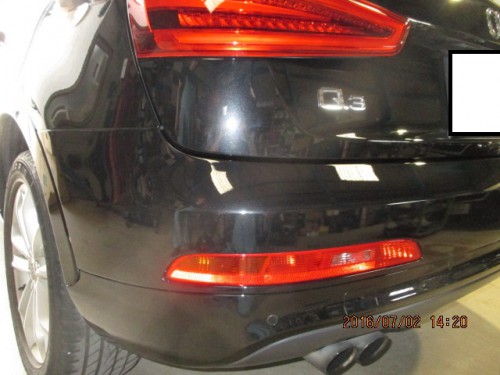 アウディQ3 リヤ周り事故板金塗装修理 岡崎市から 0564-32-6961 〒444-0908 愛知県岡崎市橋目町大師25番地 土日祝営業! 営業時間 AM9:00〜PM8:00(ご来店前にご連絡ください)