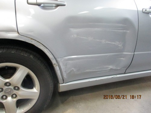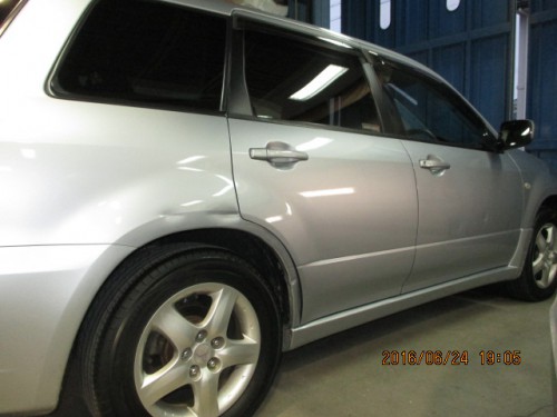 三菱エアトレック右側面大きいへこみ中古部品を使用して修理 0564-32-6961 〒444-0908 愛知県岡崎市橋目町大師25番地 土日祝営業! 営業時間 AM9:00〜PM8:00(ご来店前にご連絡ください)