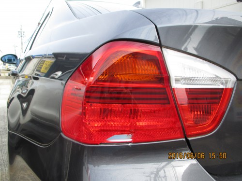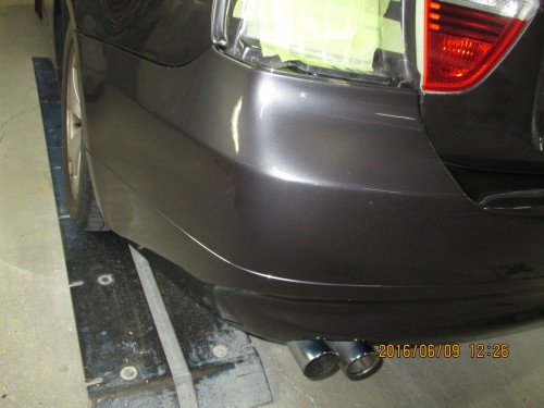 BMW325i 左リヤ周り事故実費にて板金塗装修理岡崎市から 0564-32-6961 〒444-0908 愛知県岡崎市橋目町大師25番地 土日祝営業! 営業時間 AM9:00〜PM8:00(ご来店前にご連絡ください)