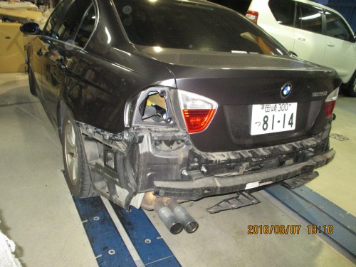 リヤバンパーはまえに一度修理をされていて見た目以上にひどい損傷でした。