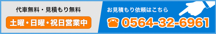 安城市で車の傷へこみ修理板金塗装するならボディーショップ富田 0564-32-6961 〒444-0908 愛知県岡崎市橋目町大師25番地 土日祝営業! 営業時間 AM9:00〜PM8:00(ご来店前にご連絡ください)