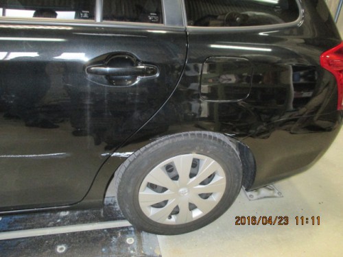 今回は岡崎市からご来店のカローラフィールダーで自動車保険を使用して左側面の板金塗装修理を掲載いたします。