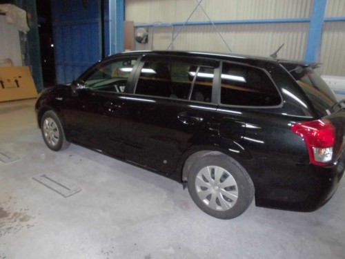 カローラフィールダー左側面保険にて板金塗装修理岡崎市から来店 0564-32-6961 〒444-0908 愛知県岡崎市橋目町大師25番地 土日祝営業! 営業時間 AM9:00〜PM8:00(ご来店前にご連絡ください)