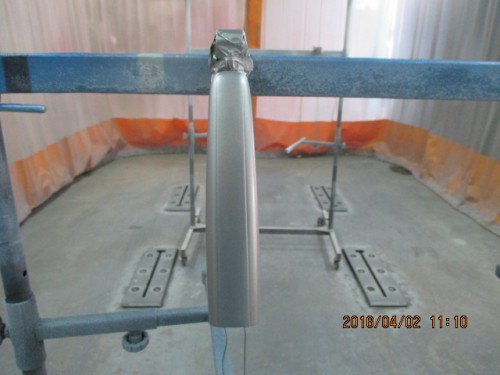 2 新品のアウターハンドルが色が付いていない為、調色した色を塗装します。