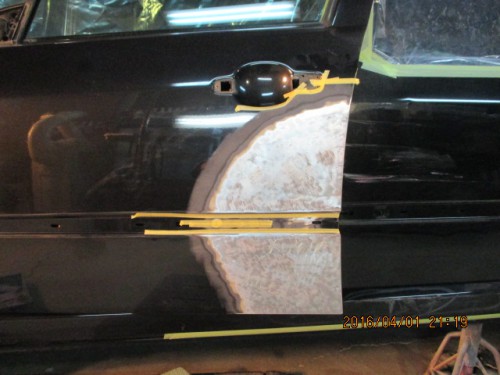 4 フロントドアを分解して板金をしていき、ポリパテを塗布します。