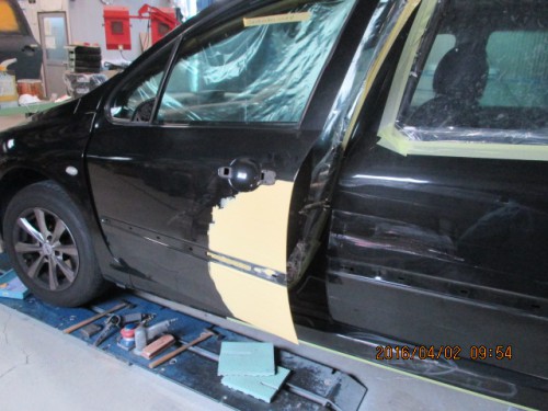 プジョー307SW左側面傷へこみ保険にて板金塗装岡崎市から 0564-32-6961 〒444-0908 愛知県岡崎市橋目町大師25番地 土日祝営業! 営業時間 AM9:00〜PM8:00(ご来店前にご連絡ください)