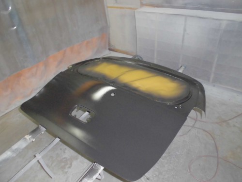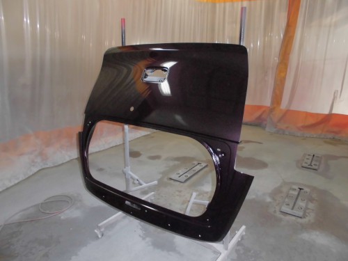 6 バックパネルを修正し板金塗装をし、塗装が乾燥したらリヤバンパーを取り付けます。