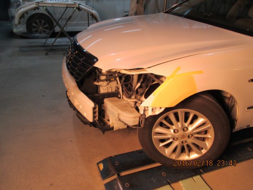 クラウン 左側面大きいへこみやちぎれなど実費で板金塗装 0564-32-6961 〒444-0908 愛知県岡崎市橋目町大師25番地 土日祝営業! 営業時間 AM9:00〜PM8:00(ご来店前にご連絡ください)