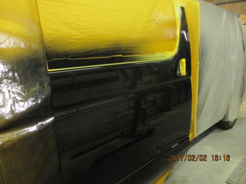 2 クオーターの塗装が乾燥したら、スライドドアをマスキングして調色した色で塗装をします。