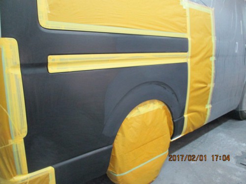 4 スライドドア、クオーターをマスキングして、プラサフを塗装します。