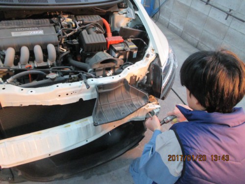 8 フロントバンパーに付属品を付け替えたり、壊れている物は新品を取り付けます。