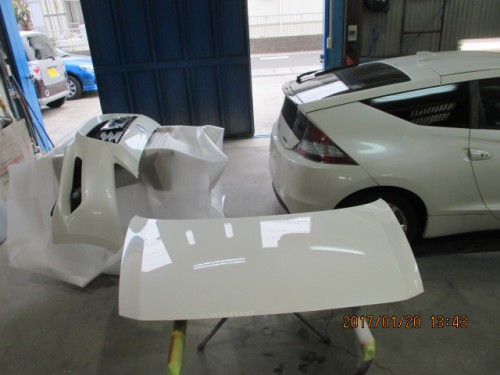 ホンダCR-Z フロント周り事故実費にて板金塗装修理 0564-32-6961 〒444-0908 愛知県岡崎市橋目町大師25番地 土日祝営業! 営業時間 AM9:00〜PM8:00(ご来店前にご連絡ください)