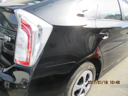 トヨタプリウス リヤ周りひどいへこみ実費にて板金塗装修理 0564-32-6961 〒444-0908 愛知県岡崎市橋目町大師25番地 土日祝営業! 営業時間 AM9:00〜PM8:00(ご来店前にご連絡ください)