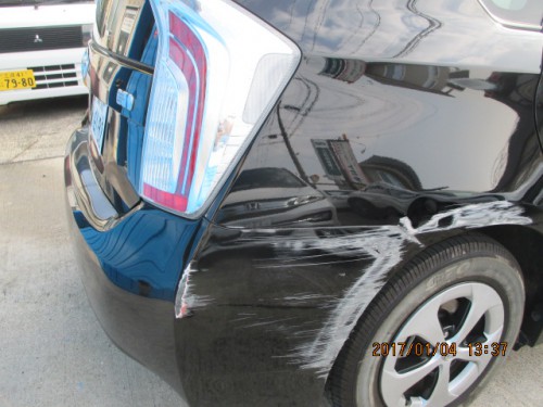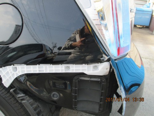 トヨタプリウス リヤ周りひどいへこみ実費にて板金塗装修理 0564-32-6961 〒444-0908 愛知県岡崎市橋目町大師25番地 土日祝営業! 営業時間 AM9:00〜PM8:00(ご来店前にご連絡ください)