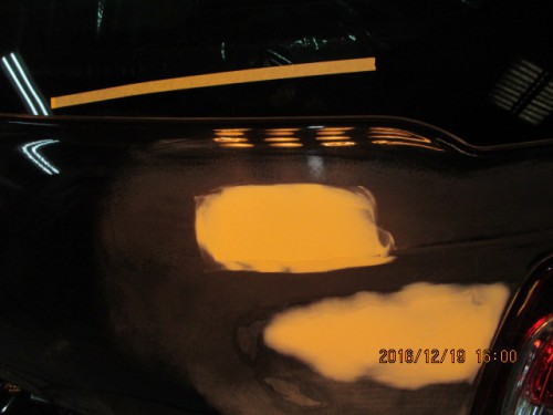 2 リヤゲートを板金し、ポリパテを塗布します。