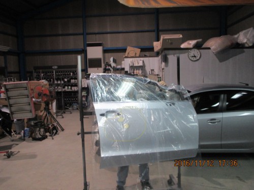 3 塗装が乾燥したら、フロントドア、フェンダーを取り付けゴミやブツなどを取り除き磨いていきます。