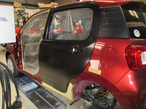 1 リヤバンパー、左テールランプを外し、左フロントドア、左リヤドアを分解し左フロントドアのみ新品に付け替えます。