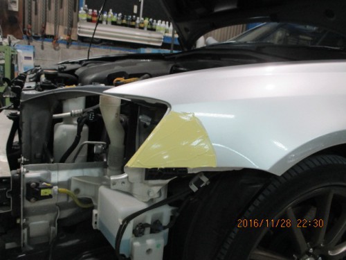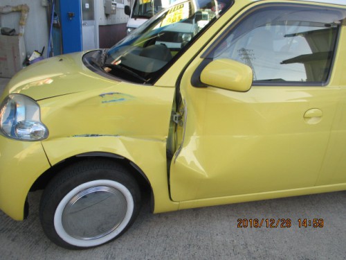 修理内容 1 フロントバンパー、左ヘッドライト脱着 2 左フロントフェンダー中古部品に交換 3 左フロントドア…