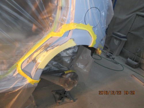 前回の続きからです。 1 ポリパテが乾燥したら、形を整えながら削っていきます。 2 マスキングをしてクオーター…