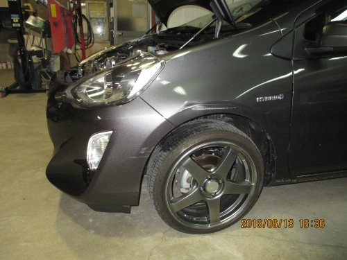 今回は豊川市からお越しのトヨタアクア左前回りきず、へこみ実費にて板金塗装修理について掲載します。 1 フロント…
